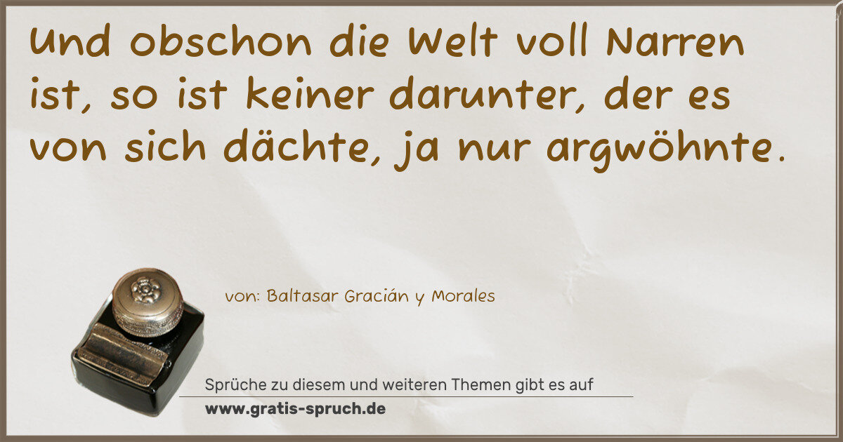 Und obschon die Welt voll Narren ist, so ist keiner darunter, der es von sich dächte, ja nur argwöhnte.