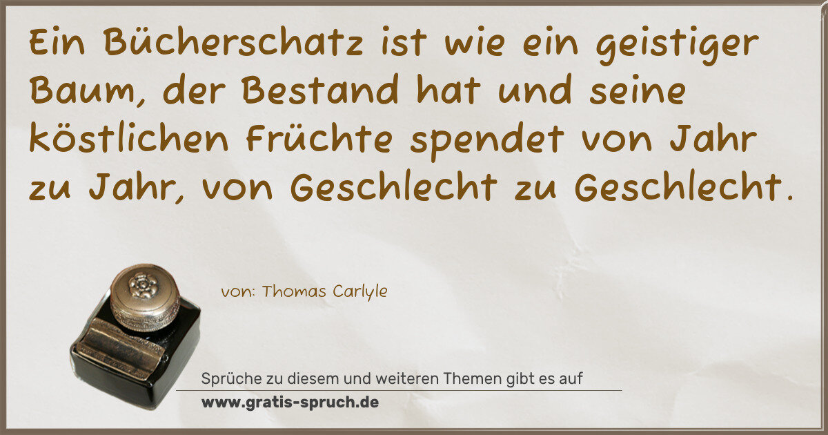 Ein Bücherschatz ist wie ein geistiger Baum, der Bestand hat und seine köstlichen Früchte spendet von Jahr zu Jahr, von Geschlecht zu Geschlecht.