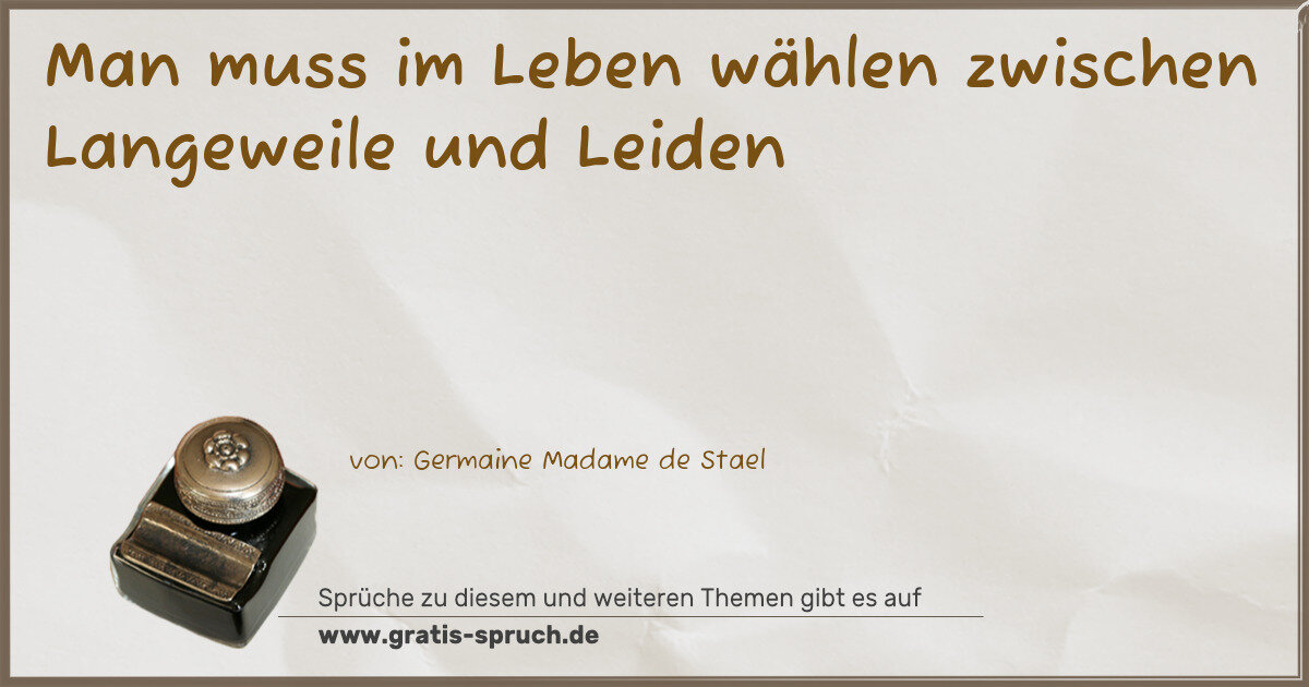 Man muss im Leben wählen zwischen Langeweile und Leiden