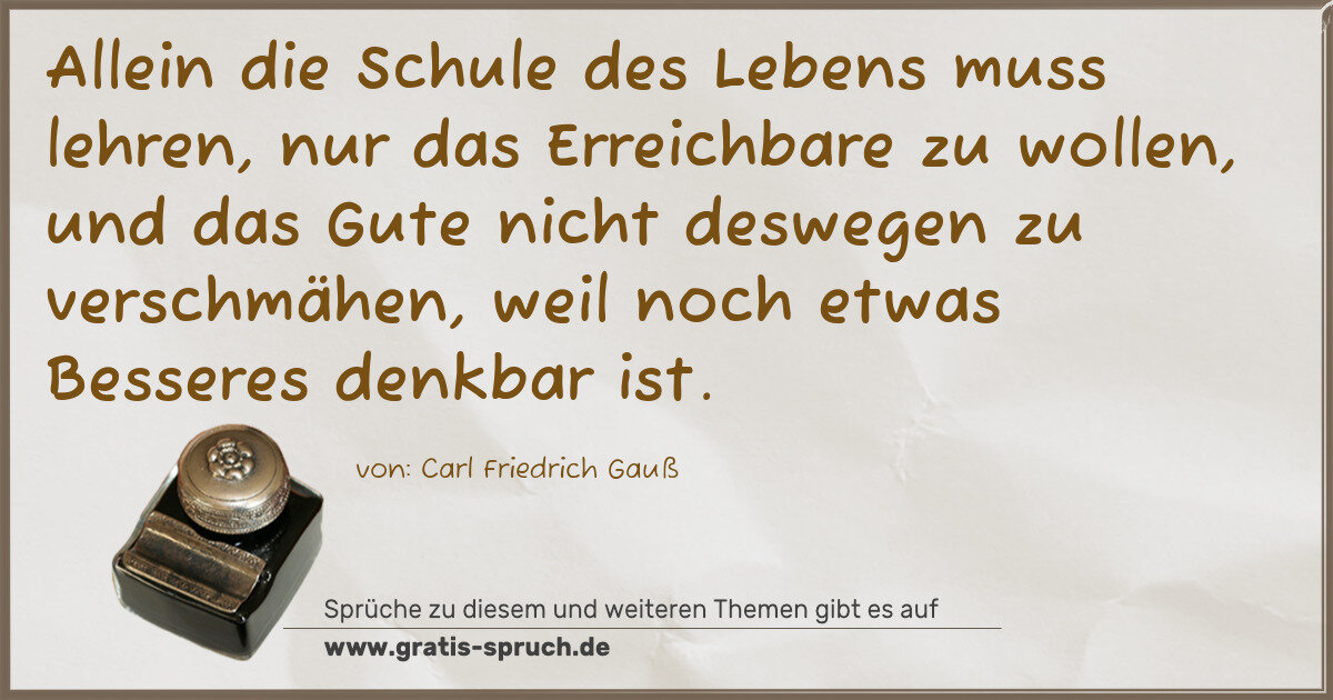 Allein die Schule des Lebens muss lehren, nur das Erreichbare zu wollen, und das Gute nicht deswegen zu verschmähen, weil noch etwas Besseres denkbar ist.