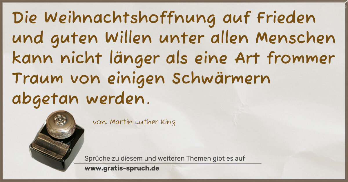 Die Weihnachtshoffnung auf Frieden und guten Willen unter allen Menschen kann nicht länger als eine Art frommer Traum von einigen Schwärmern abgetan werden.
