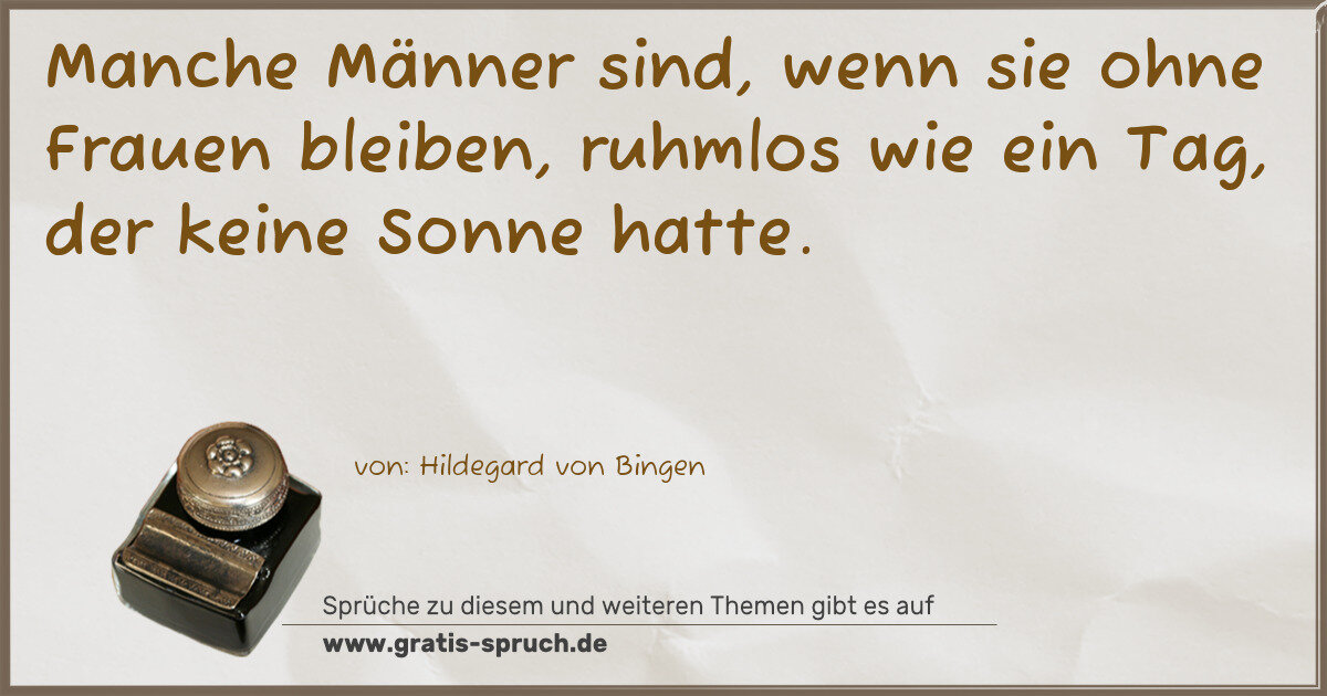 Manche Männer sind, wenn sie ohne Frauen bleiben, ruhmlos wie ein Tag, der keine Sonne hatte.
