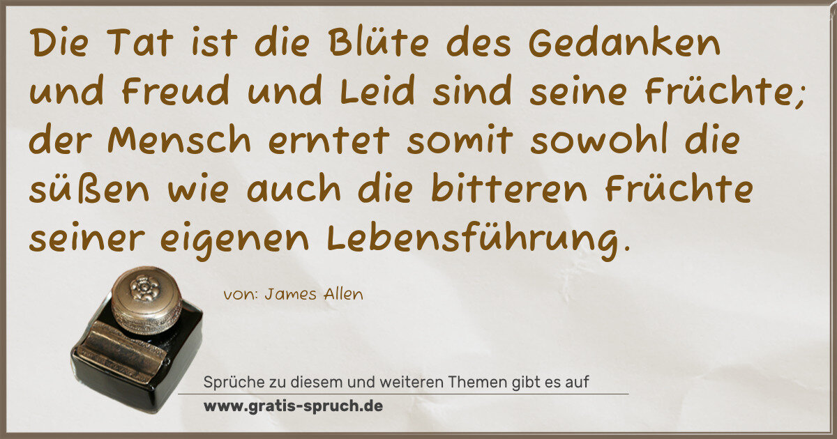 Die Tat ist die Blüte des Gedanken und Freud und Leid sind seine Früchte; der Mensch erntet somit sowohl die süßen wie auch die bitteren Früchte seiner eigenen Lebensführung.