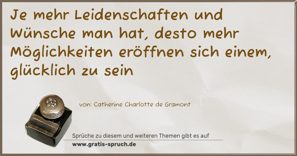 Je mehr Leidenschaften und Wünsche man hat, desto mehr Möglichkeiten eröffnen sich einem, glücklich zu sein