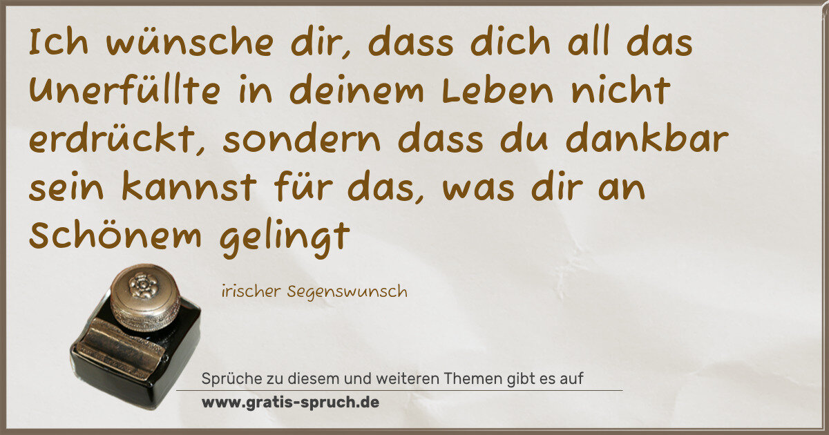 Ich wünsche dir, dass dich all das Unerfüllte in deinem Leben nicht erdrückt, sondern dass du dankbar sein kannst für das, was dir an Schönem gelingt
