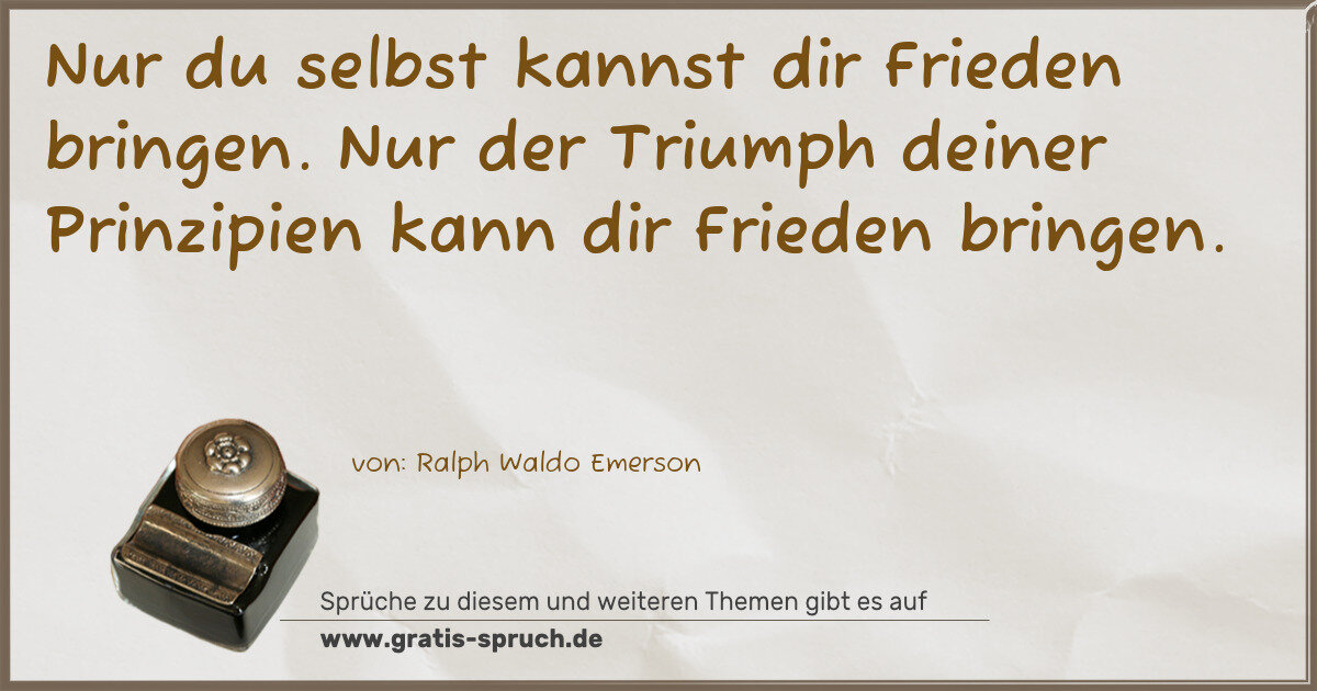 Nur du selbst kannst dir Frieden bringen. Nur der Triumph deiner Prinzipien kann dir Frieden bringen.