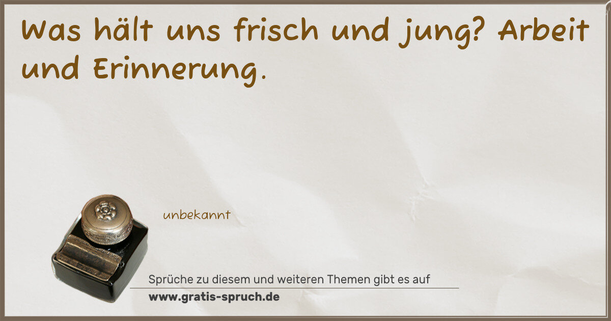 Was hält uns frisch und jung? Arbeit und Erinnerung.
