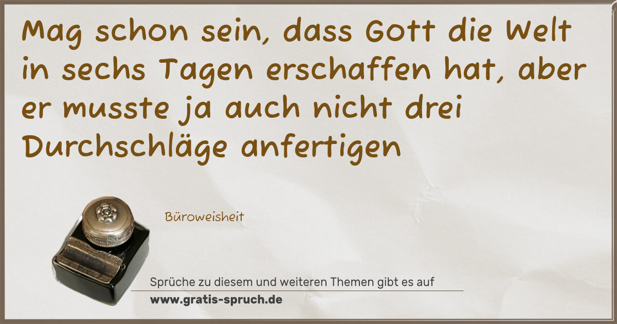 Mag schon sein, dass Gott die Welt in sechs Tagen erschaffen hat, aber er musste ja auch nicht drei Durchschläge anfertigen