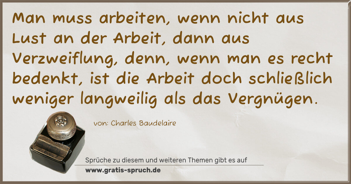 Man muss arbeiten, wenn nicht aus Lust an der Arbeit, dann aus Verzweiflung, denn, wenn man es recht bedenkt, ist die Arbeit doch schließlich weniger langweilig als das Vergnügen.