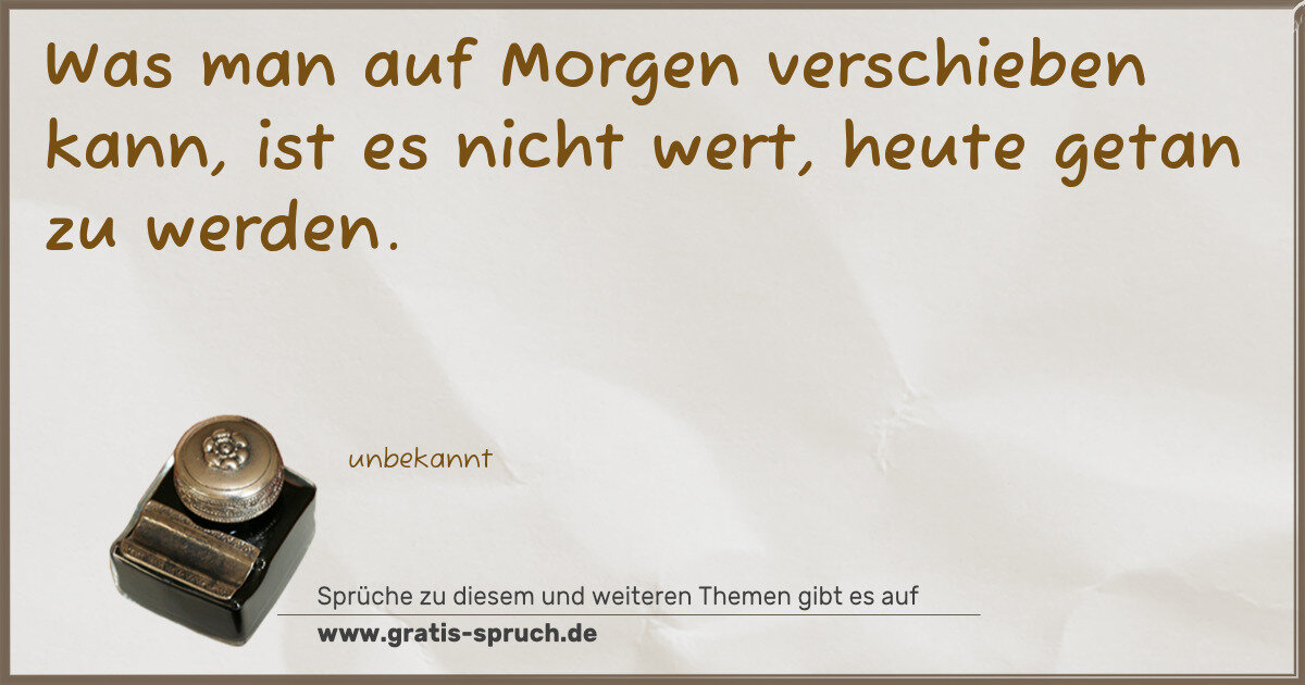Was man auf Morgen verschieben kann, ist es nicht wert, heute getan zu werden.
