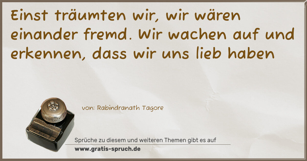 Einst träumten wir, wir wären einander fremd. Wir wachen auf und erkennen, dass wir uns lieb haben