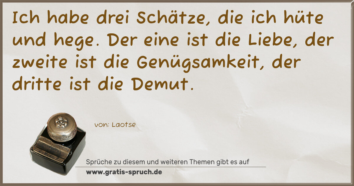 Ich habe drei Schätze, die ich hüte und hege. Der eine ist die Liebe, der zweite ist die Genügsamkeit, der dritte ist die Demut.
