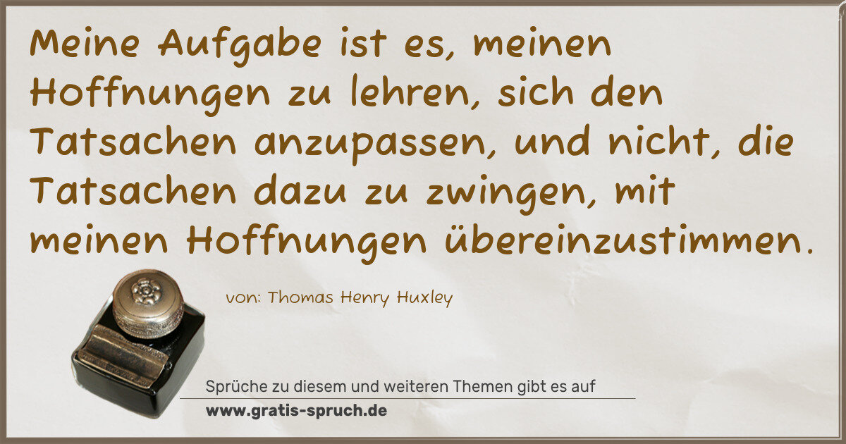 Meine Aufgabe ist es, meinen Hoffnungen zu lehren, sich den Tatsachen anzupassen, und nicht, die Tatsachen dazu zu zwingen, mit meinen Hoffnungen übereinzustimmen.