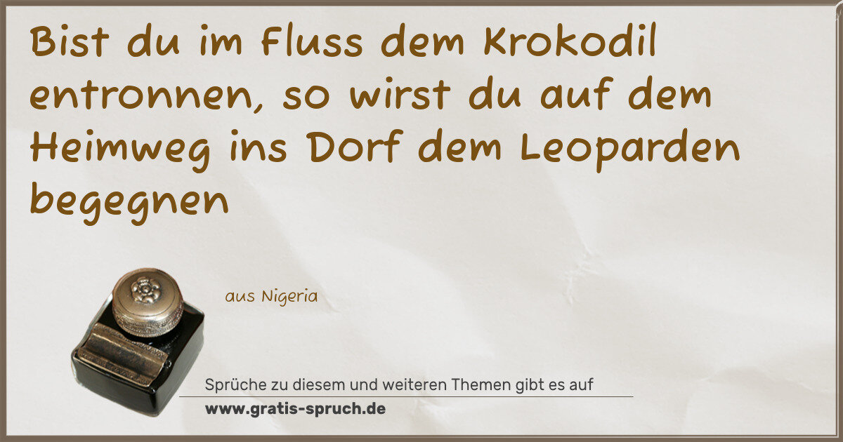 Bist du im Fluss dem Krokodil entronnen, so wirst du auf dem Heimweg ins Dorf dem Leoparden begegnen