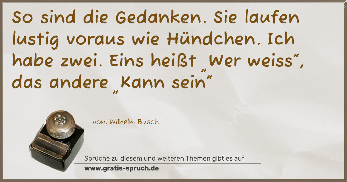 So sind die Gedanken. Sie laufen lustig voraus wie Hündchen. Ich habe zwei. Eins heißt „Wer weiss“, das andere „Kann sein“