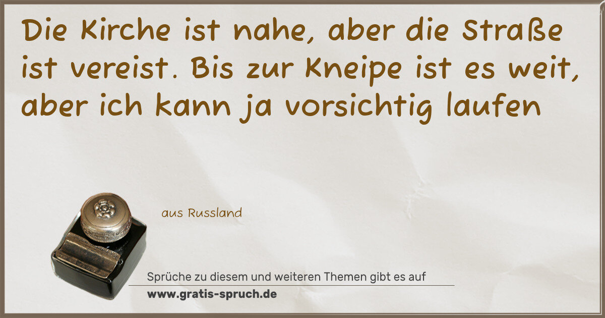 Die Kirche ist nahe, aber die Straße ist vereist. Bis zur Kneipe ist es weit, aber ich kann ja vorsichtig laufen