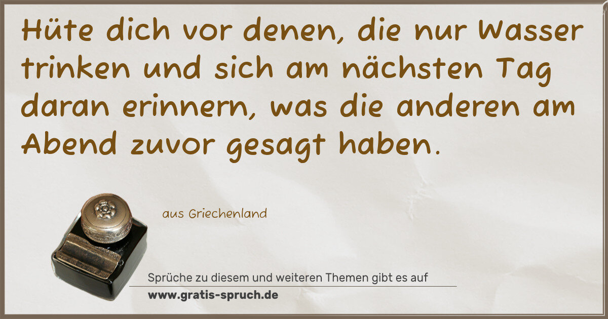 Hüte dich vor denen, die nur Wasser trinken und sich am nächsten Tag daran erinnern, was die anderen am Abend zuvor gesagt haben.
