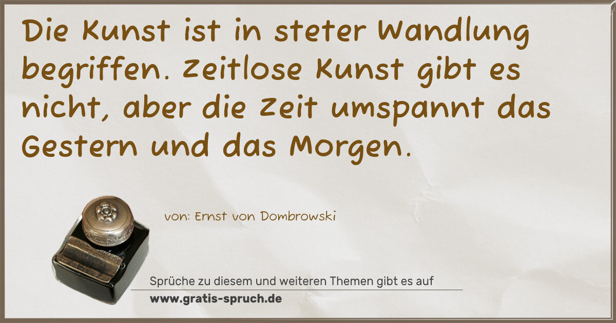 Die Kunst ist in steter Wandlung begriffen. Zeitlose Kunst gibt es nicht, aber die Zeit umspannt das Gestern und das Morgen.
