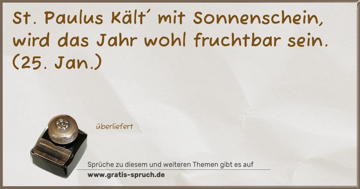 St. Paulus Kält' mit Sonnenschein, wird das Jahr wohl fruchtbar sein. (25. Jan.)