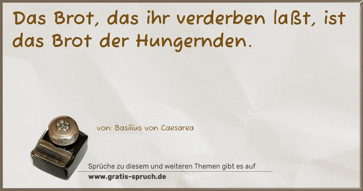 Das Brot, das ihr verderben laßt, ist das Brot der Hungernden.