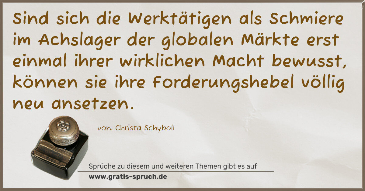 Sind sich die Werktätigen als Schmiere im Achslager der globalen Märkte erst einmal ihrer wirklichen Macht bewusst, können sie ihre Forderungshebel völlig neu ansetzen.