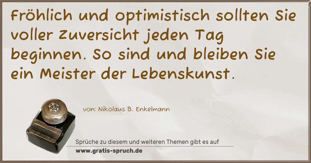 Fröhlich und optimistisch sollten Sie voller Zuversicht jeden Tag beginnen. So sind und bleiben Sie ein Meister der Lebenskunst.