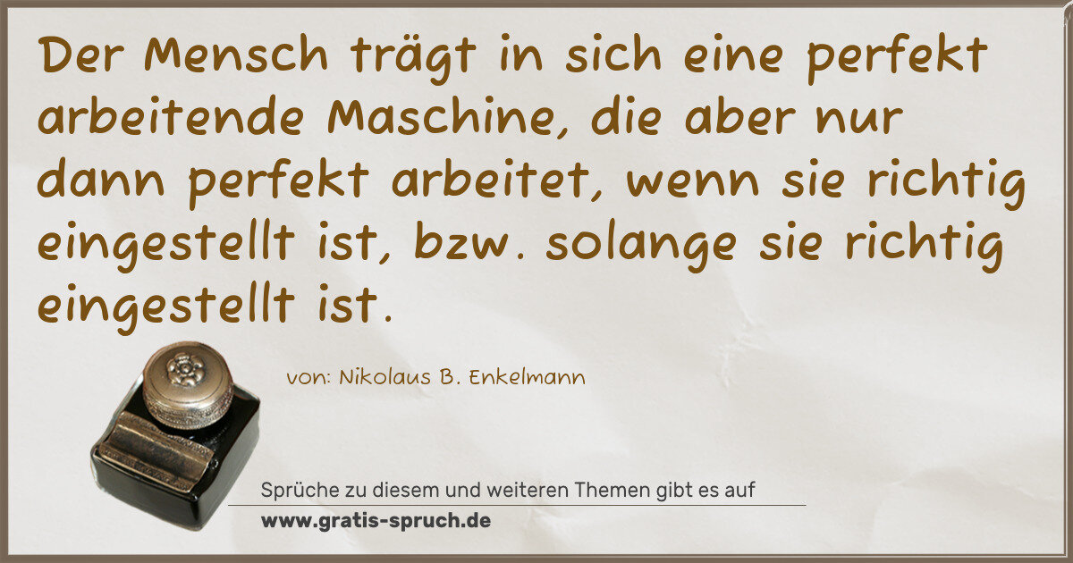 Der Mensch trägt in sich eine perfekt arbeitende Maschine, die aber nur dann perfekt arbeitet, wenn sie richtig eingestellt ist, bzw. solange sie richtig eingestellt ist.