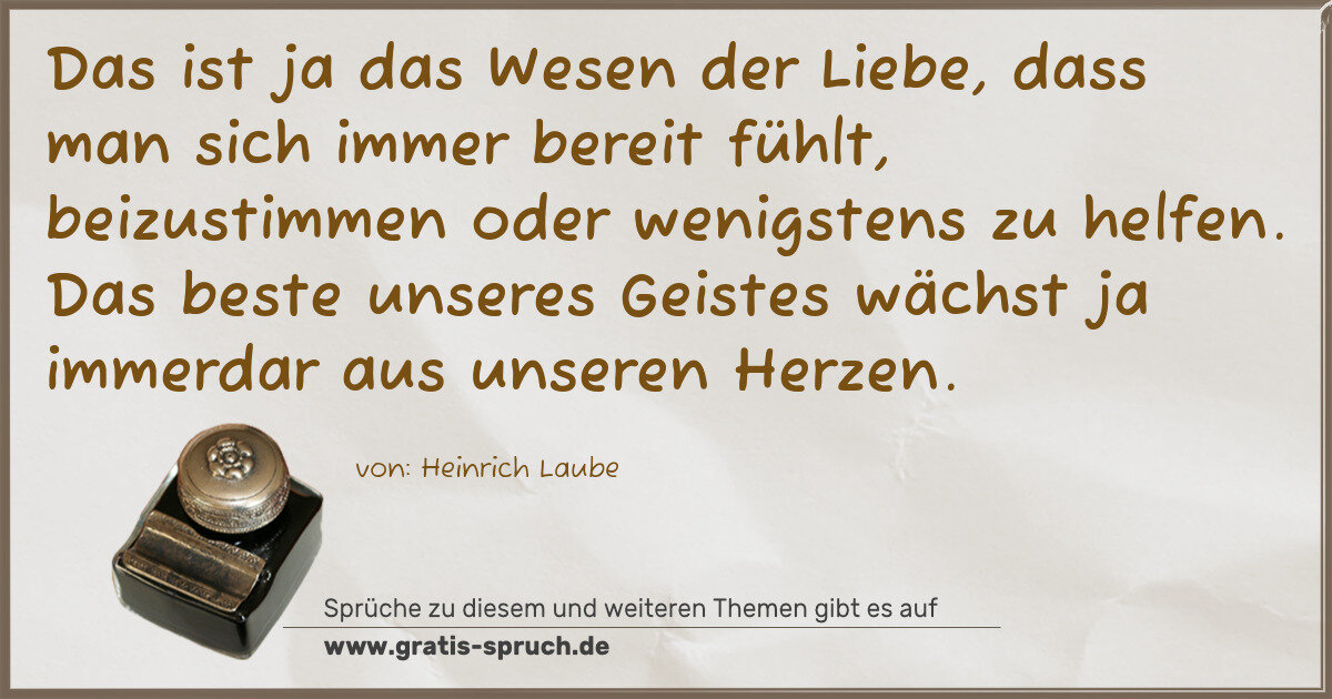 Das ist ja das Wesen der Liebe, dass man sich immer bereit fühlt, beizustimmen oder wenigstens zu helfen. Das beste unseres Geistes wächst ja immerdar aus unseren Herzen.