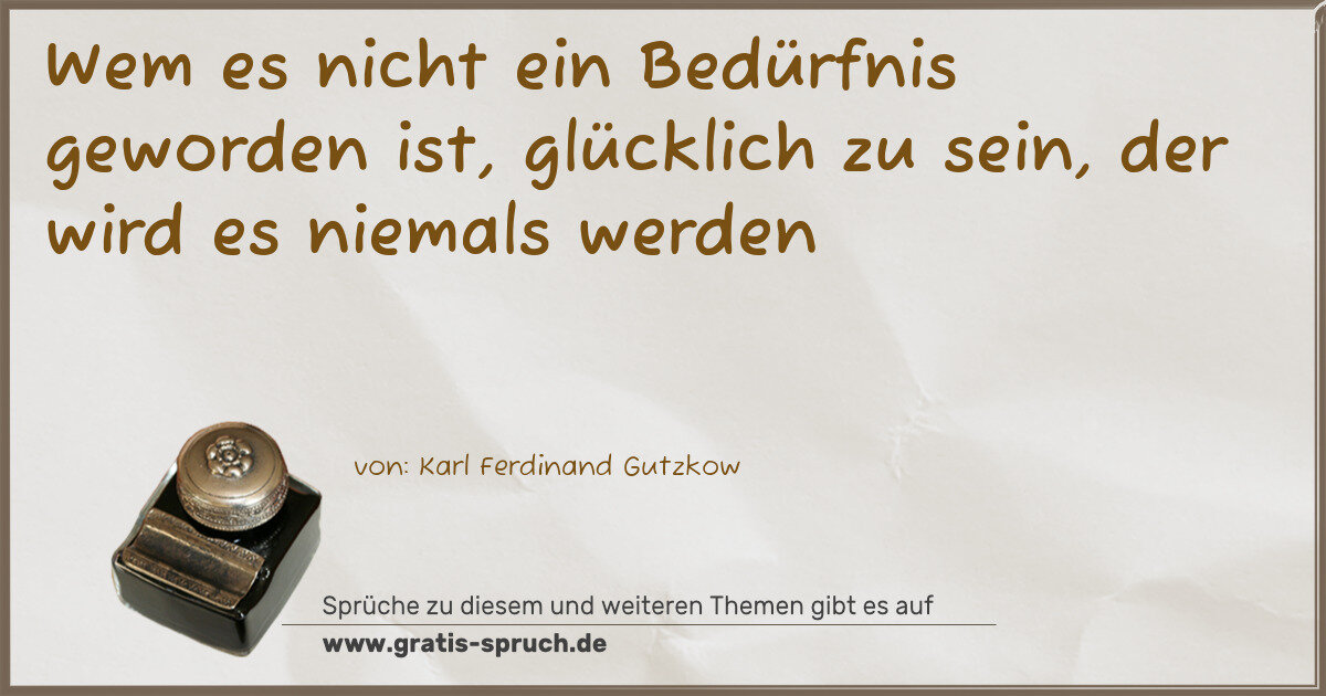 Wem es nicht ein Bedürfnis geworden ist, glücklich zu sein, der wird es niemals werden