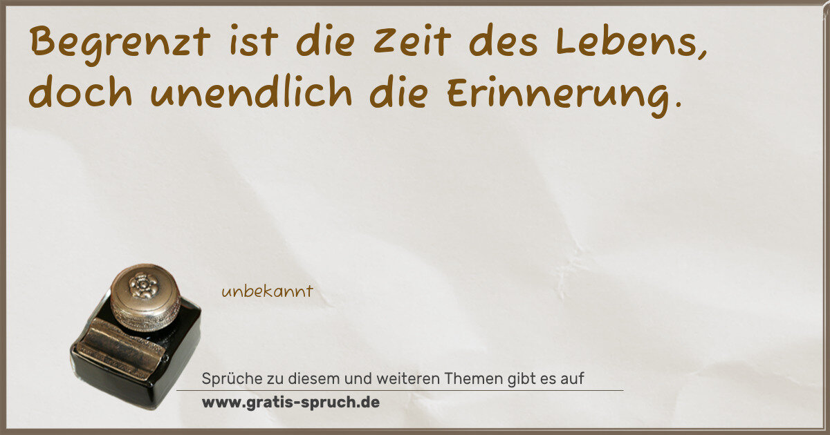 Begrenzt ist die Zeit des Lebens, doch unendlich die Erinnerung.