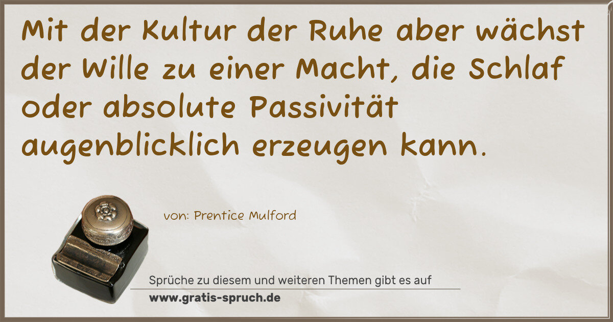 Mit der Kultur der Ruhe aber wächst der Wille zu einer Macht, die Schlaf oder absolute Passivität augenblicklich erzeugen kann.