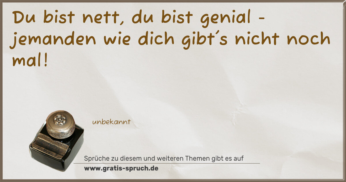 Du bist nett, du bist genial - jemanden wie dich gibt's nicht noch mal!