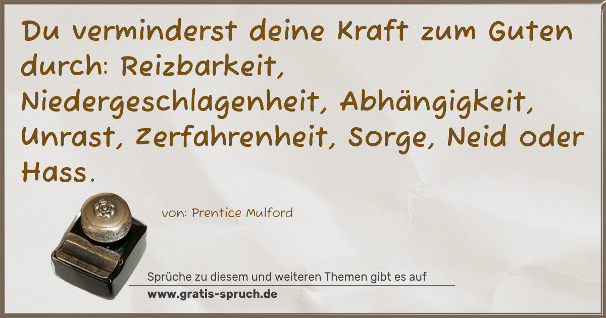 Du verminderst deine Kraft zum Guten durch: Reizbarkeit, Niedergeschlagenheit, Abhängigkeit, Unrast, Zerfahrenheit, Sorge, Neid oder Hass.