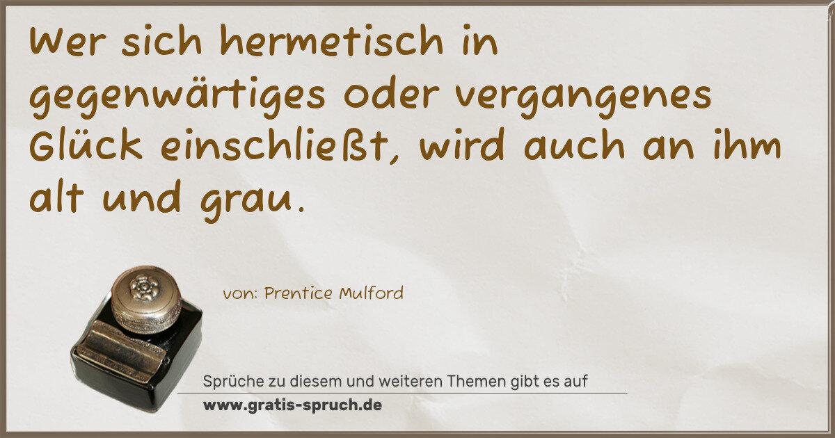 Wer sich hermetisch in gegenwärtiges oder vergangenes Glück einschließt, wird auch an ihm alt und grau.