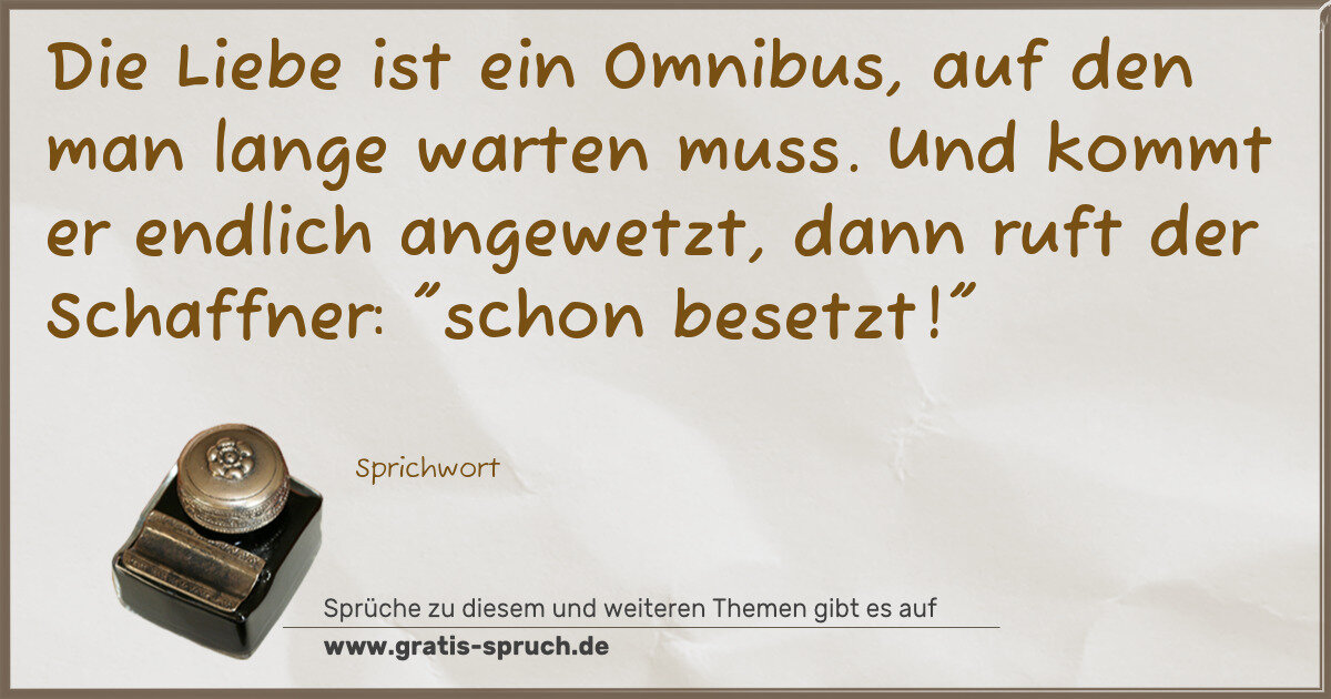 Die Liebe ist ein Omnibus, auf den man lange warten muss. Und kommt er endlich angewetzt, dann ruft der Schaffner: "schon besetzt!"