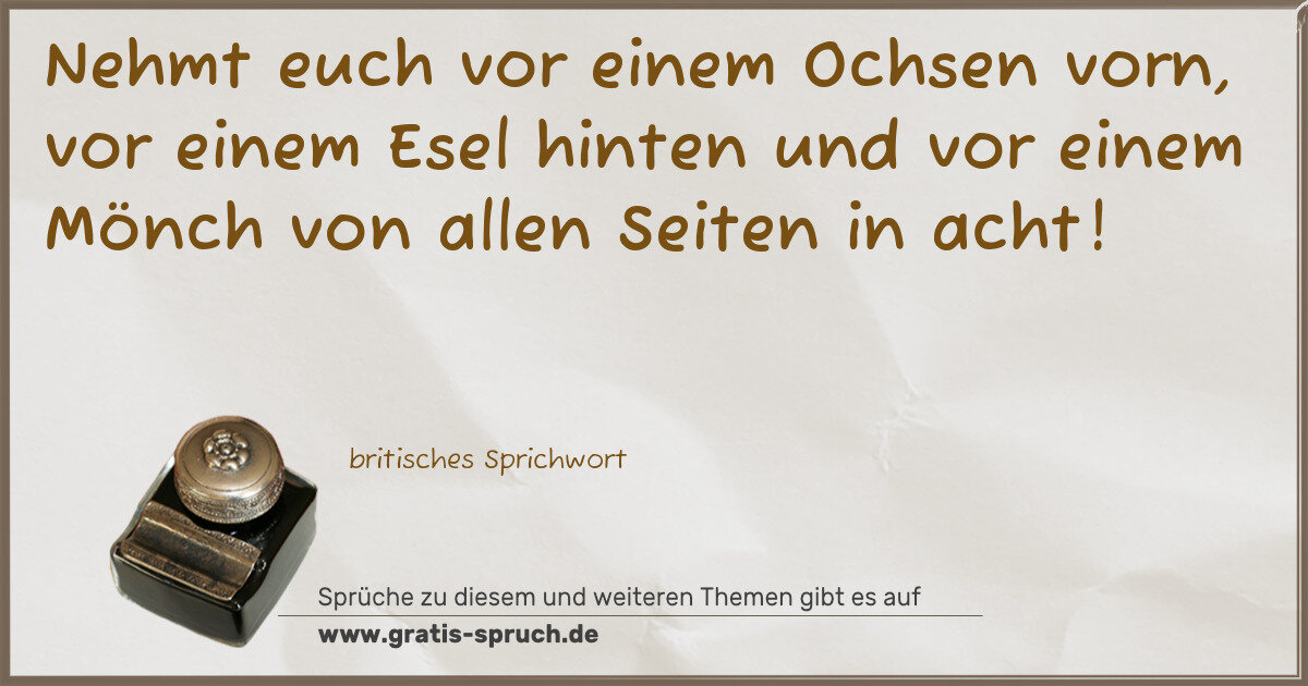 Nehmt euch vor einem Ochsen vorn, vor einem Esel hinten und vor einem Mönch von allen Seiten in acht!