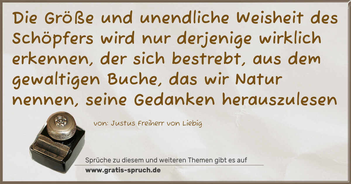 Die Größe und unendliche Weisheit des Schöpfers wird nur derjenige wirklich erkennen, der sich bestrebt, aus dem gewaltigen Buche, das wir Natur nennen, seine Gedanken herauszulesen