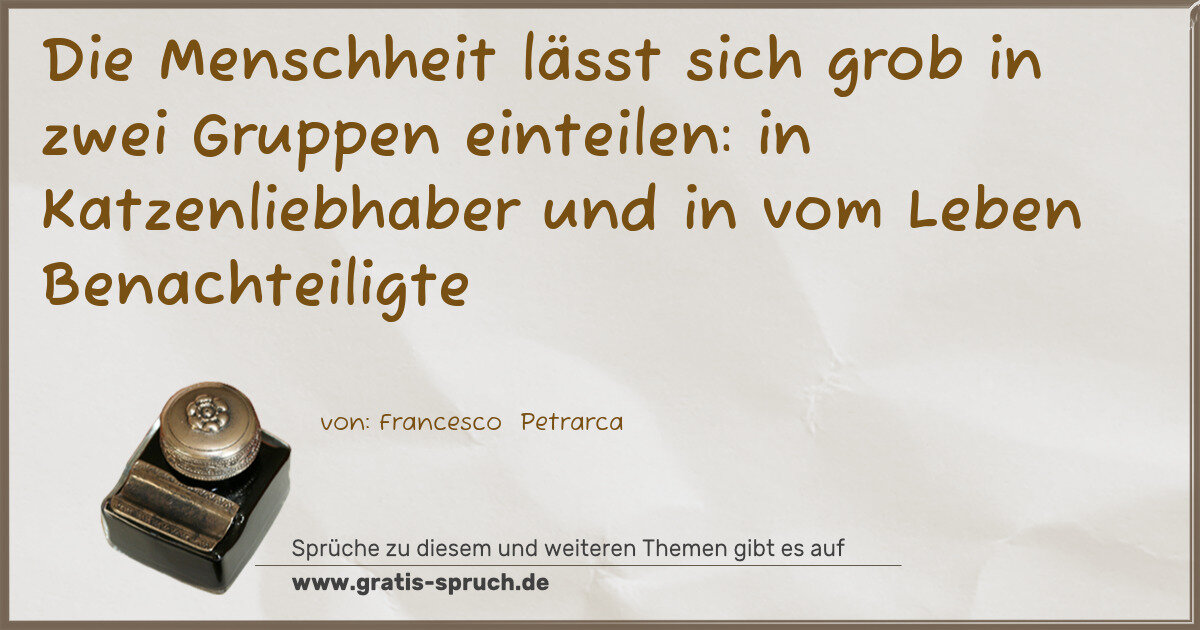 Die Menschheit lässt sich grob in zwei Gruppen einteilen: in Katzenliebhaber und in vom Leben Benachteiligte