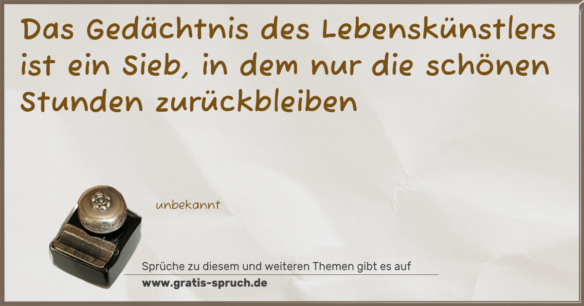 Das Gedächtnis des Lebenskünstlers ist ein Sieb, in dem nur die schönen Stunden zurückbleiben