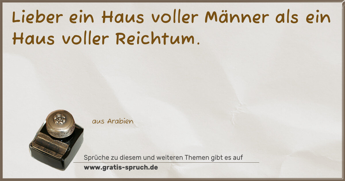 Lieber ein Haus voller Männer als ein Haus voller Reichtum.