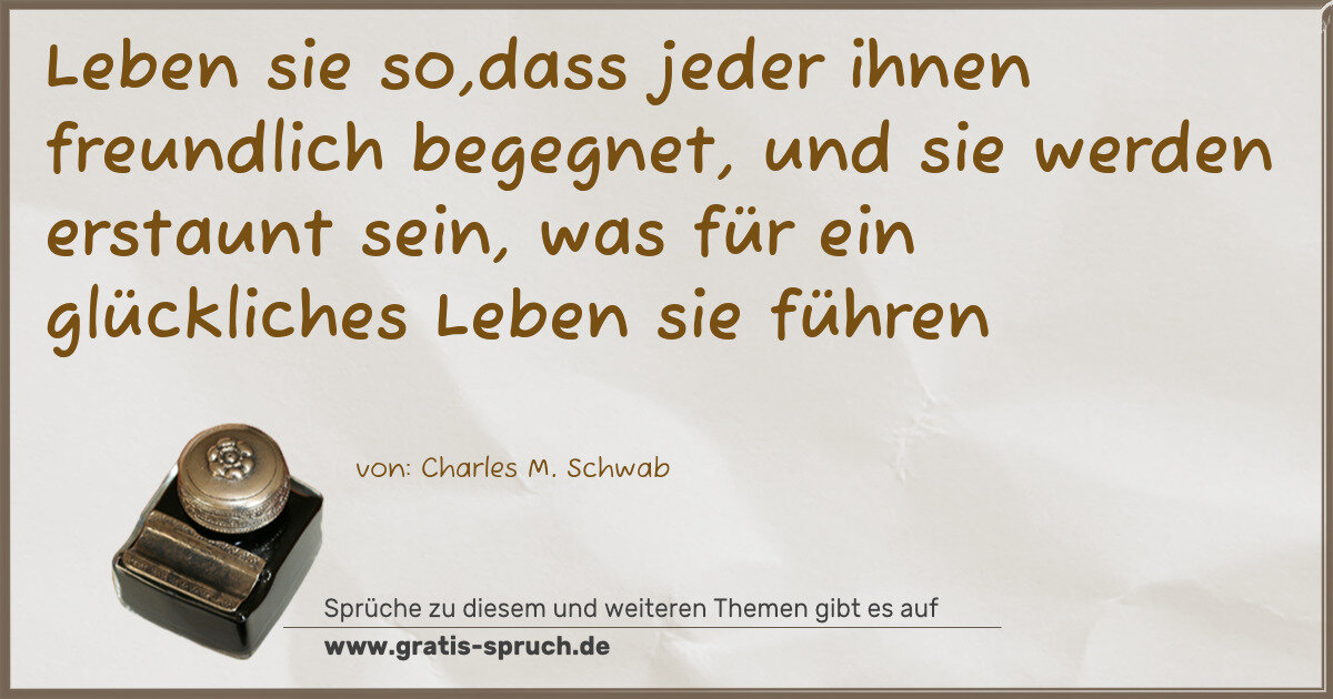 Leben sie so,dass jeder ihnen freundlich begegnet, und sie werden erstaunt sein, was für ein glückliches Leben sie führen