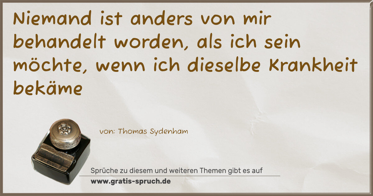 Niemand ist anders von mir behandelt worden, als ich sein möchte, wenn ich dieselbe Krankheit bekäme
