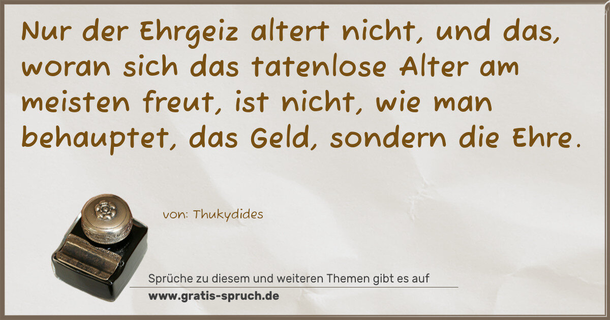 Nur der Ehrgeiz altert nicht, und das, woran sich das tatenlose Alter am meisten freut, ist nicht, wie man behauptet, das Geld, sondern die Ehre.