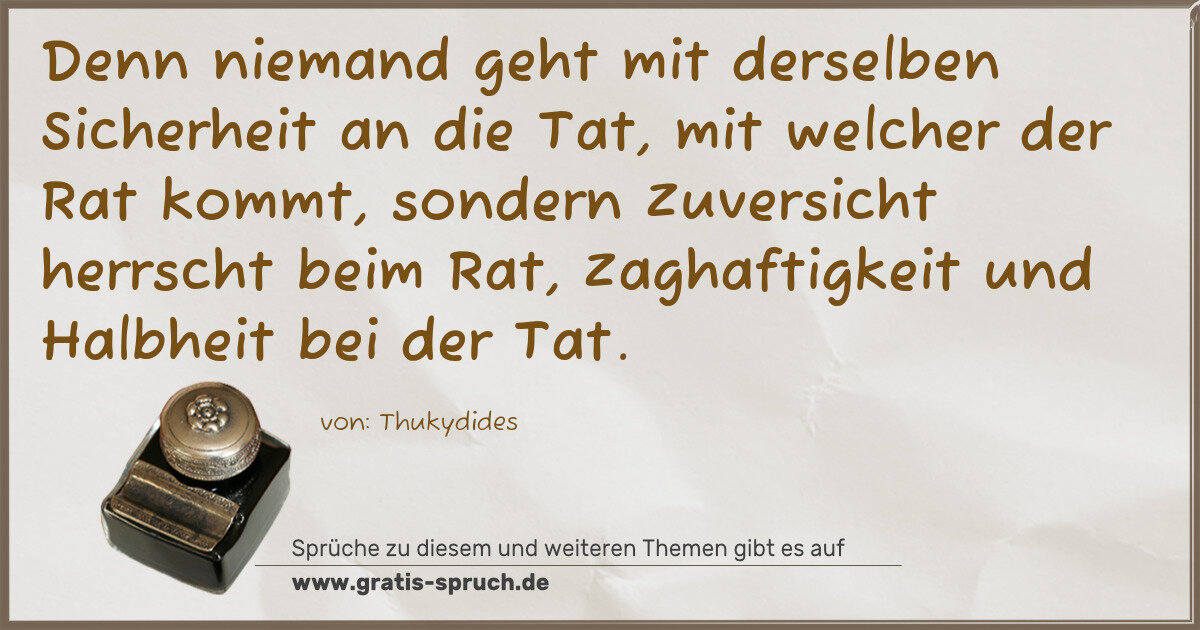 Denn niemand geht mit derselben Sicherheit an die Tat, mit welcher der Rat kommt, sondern Zuversicht herrscht beim Rat, Zaghaftigkeit und Halbheit bei der Tat.