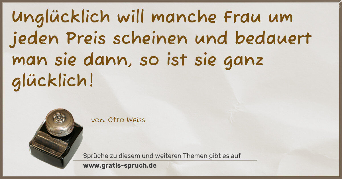 Unglücklich will manche Frau um jeden Preis scheinen und bedauert man sie dann, so ist sie ganz glücklich!