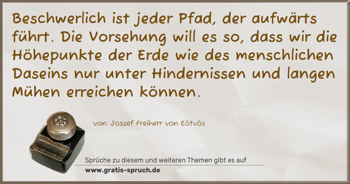 Beschwerlich ist jeder Pfad, der aufwärts führt. Die Vorsehung will es so, dass wir die Höhepunkte der Erde wie des menschlichen Daseins nur unter Hindernissen und langen Mühen erreichen können.
