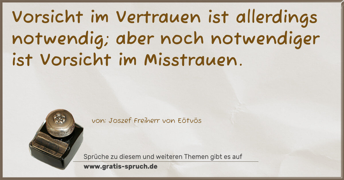 Vorsicht im Vertrauen ist allerdings notwendig; aber noch notwendiger ist Vorsicht im Misstrauen.