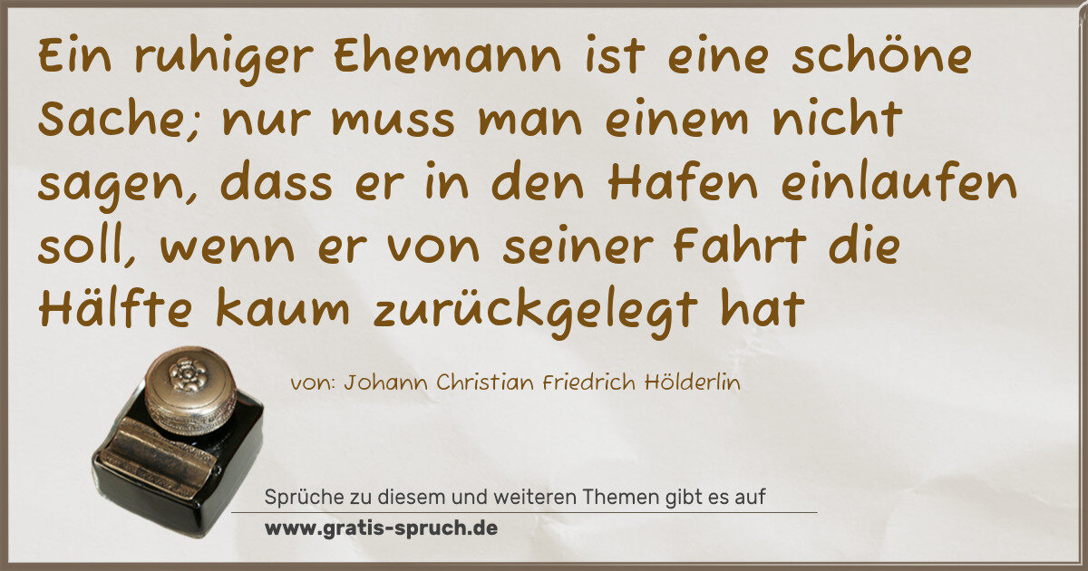 Ein ruhiger Ehemann ist eine schöne Sache; nur muss man einem nicht sagen, dass er in den Hafen einlaufen soll, wenn er von seiner Fahrt die Hälfte kaum zurückgelegt hat