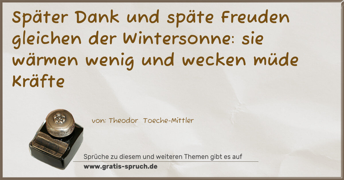 Später Dank und späte Freuden gleichen der Wintersonne: sie wärmen wenig und wecken müde Kräfte