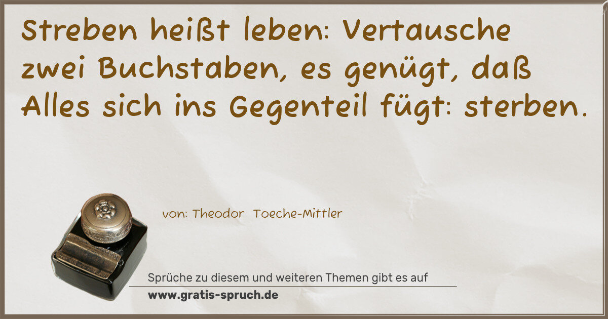 Streben heißt leben: Vertausche zwei Buchstaben, es genügt, daß Alles sich ins Gegenteil fügt: sterben.